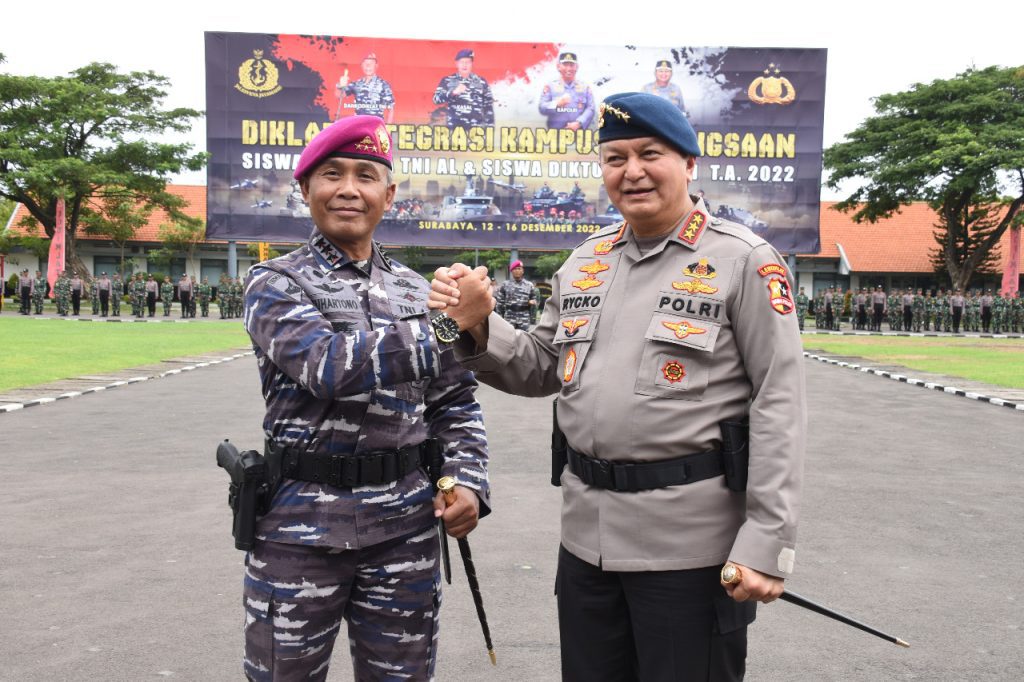 SURABAYA || tNews.co.id – Komandan Batalyon Marinir Pertahanan Pangkalan (Danyonmarhanlan) V Pasmar 2 Letkol Mar Anton Prastowo., M.Tr.Opsla., menghadiri acara laporan Korps kenaikan pangkat satu tingkat lebih tinggi Perwira Lantamal V, yang dipimpin oleh Danlantamal V Laksamana Pertama TNI Yoos Suryono Hadi, M.Tr (Han).,M.Tr.Opsla., CHRMP di Lobby Mako Lantamal V Jl. Laksda M.Nazir No 56 Perak Surabaya, Jumat (01/10/2021).