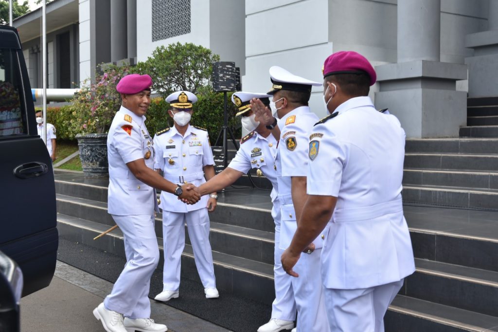 SURABAYA || tNews.co.id – Komandan Batalyon Marinir Pertahanan Pangkalan (Danyonmarhanlan) V Pasmar 2 Letkol Mar Anton Prastowo., M.Tr.Opsla., menghadiri acara laporan Korps kenaikan pangkat satu tingkat lebih tinggi Perwira Lantamal V, yang dipimpin oleh Danlantamal V Laksamana Pertama TNI Yoos Suryono Hadi, M.Tr (Han).,M.Tr.Opsla., CHRMP di Lobby Mako Lantamal V Jl. Laksda M.Nazir No 56 Perak Surabaya, Jumat (01/10/2021).