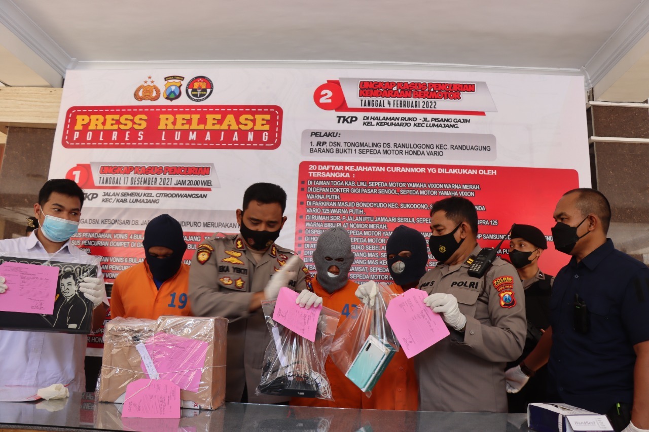 “Ya benar, pelaku SB ini telah mengambil, 1 unit Laptop merk acer aspire dan 1 unit Hp merk OPPO A31 warna putih , uang tunai sebesar 2 juta dan barang-barang milik korban lainnya temasuk SIM dan KTP ,” ujar Kapolres Lumajang AKBP Eka Hananto Seno pada pers release. Kamis, 03 Februari 2022 siang.
