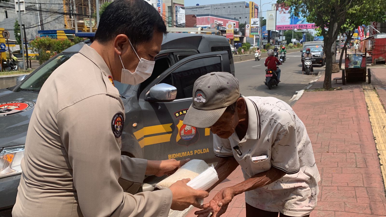 SERANG, tNews.co.id – Sebagai bentuk kepedulian Polri kepada masyarakat ditengah situasi pandemi Covid-19, Bidhumas Polda Banten melaksanakan bakti sosial dalam rangka Jumat Barokah dengan cara membagikan puluhan paket beras dan masker kepada para pemulung, tukang parkir, tukang becak, tukang ojeg pangkalan serta pengemis di sepanjang jalan Kota Serang pada Jumat (04/02).