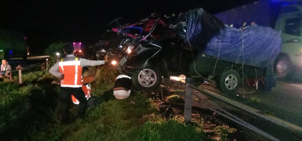 Kecelakaan tunggal ini dialami kendaraan Mitsubishi Pickup L300 Nopol BE-8986-OY.