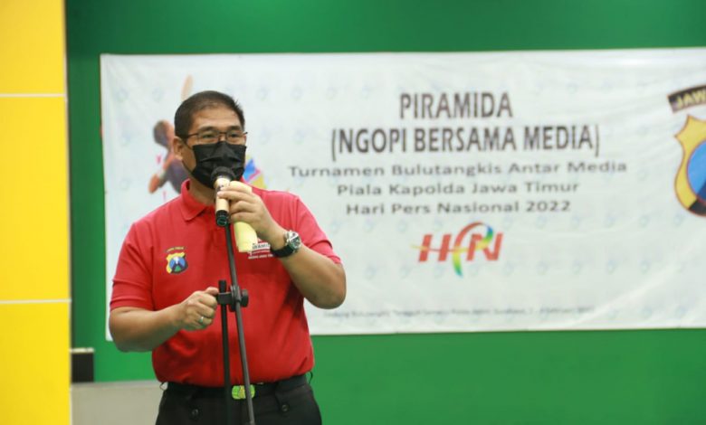 SURABAYA, tNews.co.id – Dalam rangka peringati Hari Pers Nasional (HPN) 2022, Polda Jatim gelar Ngopi Bareng Media (Piramida) yang di kemas dalam turnamen bulu tangkis antar media, piala Kapolda Jatim. Kegiatan ini berlangsung selama dua hari, mulai Selasa (8/2) sampai dengan Rabu (9/2) di Gedung Bulu Tangkis Tangguh Semeru Polda Jatim.