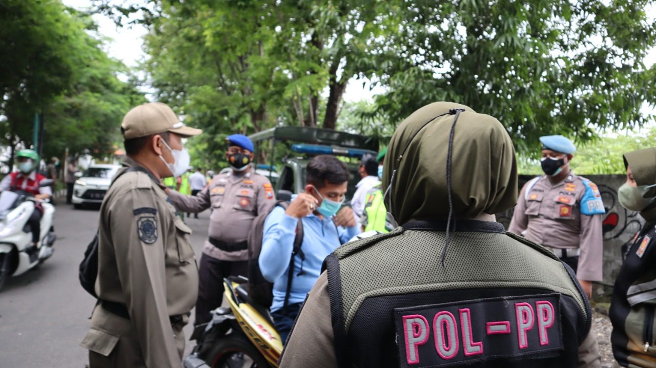 Personil Gabungan TNI-Polri dan Sat Pol PP Gelar Operasi Yustisi di Bundaran GKB Gresik