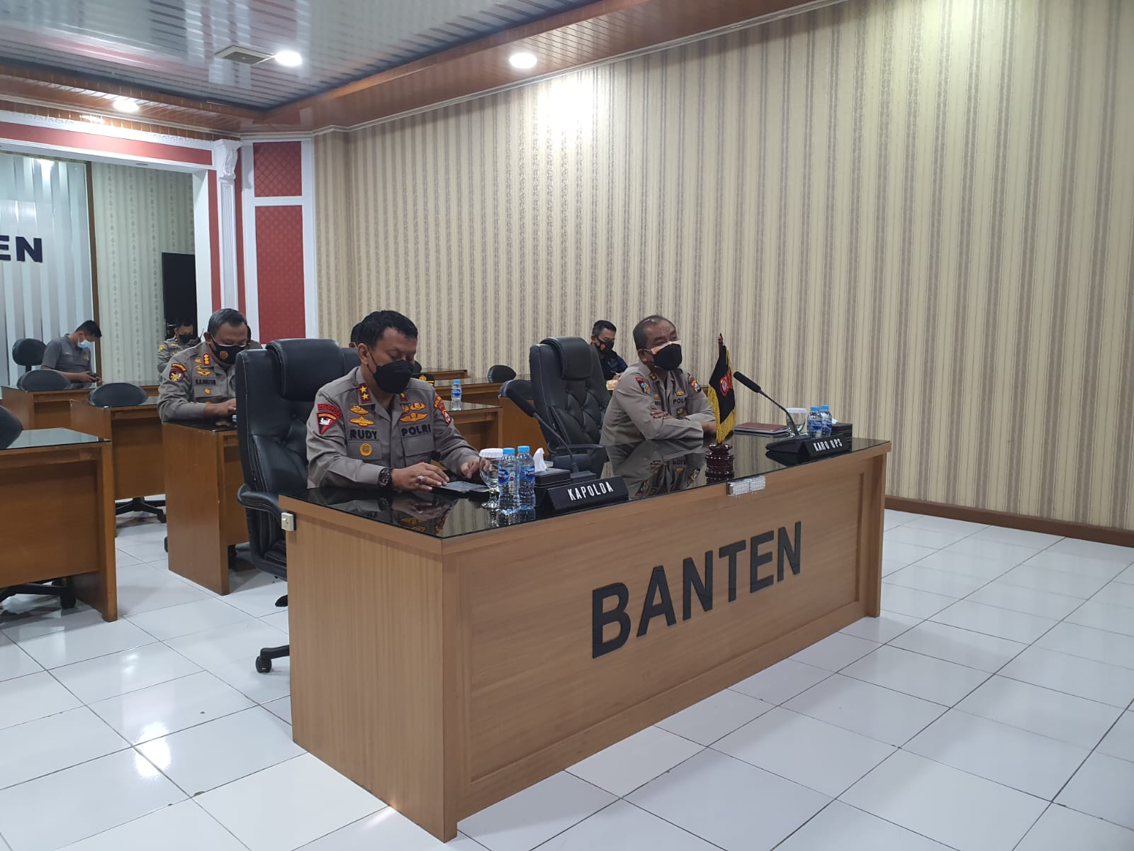 Dalam kegiatan ini turut hadir Karoops Polda Banten Kombes Pol Amiludin Roemtaat, Dirpolairud Polda Banten Kombes Pol Giuseppe Reinhard Gultom, Dirsamapta Polda Banten Kombes Pol Murwoto dan diikuti Polda seluruh Indonesia melalui zoom meeting.