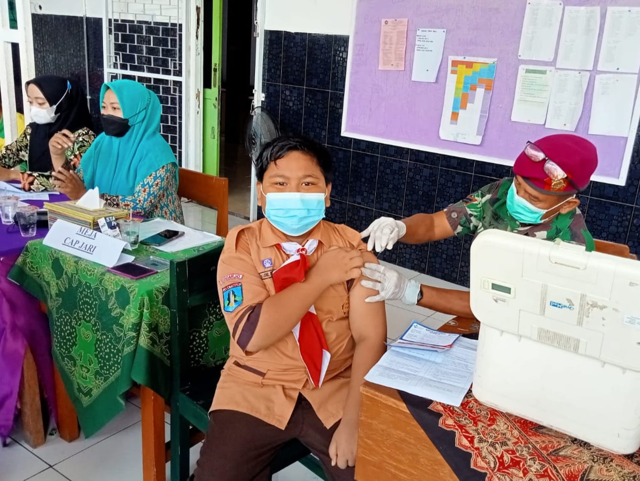 Vaksinasi covid-19 untuk murid di Sekolah Dasar Islam A-Education tersebut dilaksanakan oleh Prajurit Pasmar 2 dari Yonkes 2 Mar bekerja sama dengan Puskesmas Sukodono, diharapkan dapat mendukung pelaksanaan Pembelajaran Tatap Muka (PTM) yang aman dan terciptanya herd immunity di lingkungan sekolah.