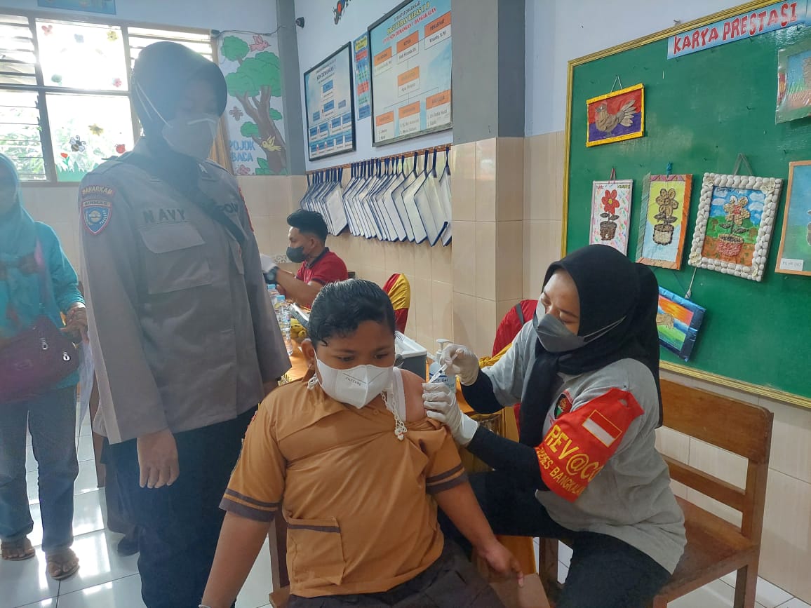 “Alhamdulillah puluhan siswa SDN Demangan 01 Bangkalan yang hari ini divaksin tidak ada yang mengalami kendala apapun dan semuanya berjalan dengan lancar dan aman. Mereka sama sekali tidak takut dan pendampingan kami yang kali ini datang bersama Babinsa adalah bentuk bahwa polri selalu hadir memberikan pelayanan yang terdepan dan terbaik kepada seluruh lapisan masyarakat luas. Sinergitas bersama TNI akan selalu terjalin erat untuk kenyamanan dan kondusifitas masyarakat,” terang Briptu Navy.