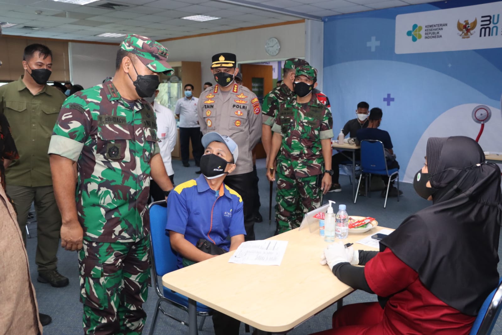 TANGERANG, tNews.co.id – Kapolresta Tangerang Kombes Pol Zain Dwi Nugroho mendampingi Pangdam Jaya Mayjen TNI Untung Budiharto pada kegiatan peninjauan pelaksanaan Vaksinasi Booster PT. Torabika, Kecamatan Cikupa, Kabupaten Tangerang, Sabtu (26/2/2022).
