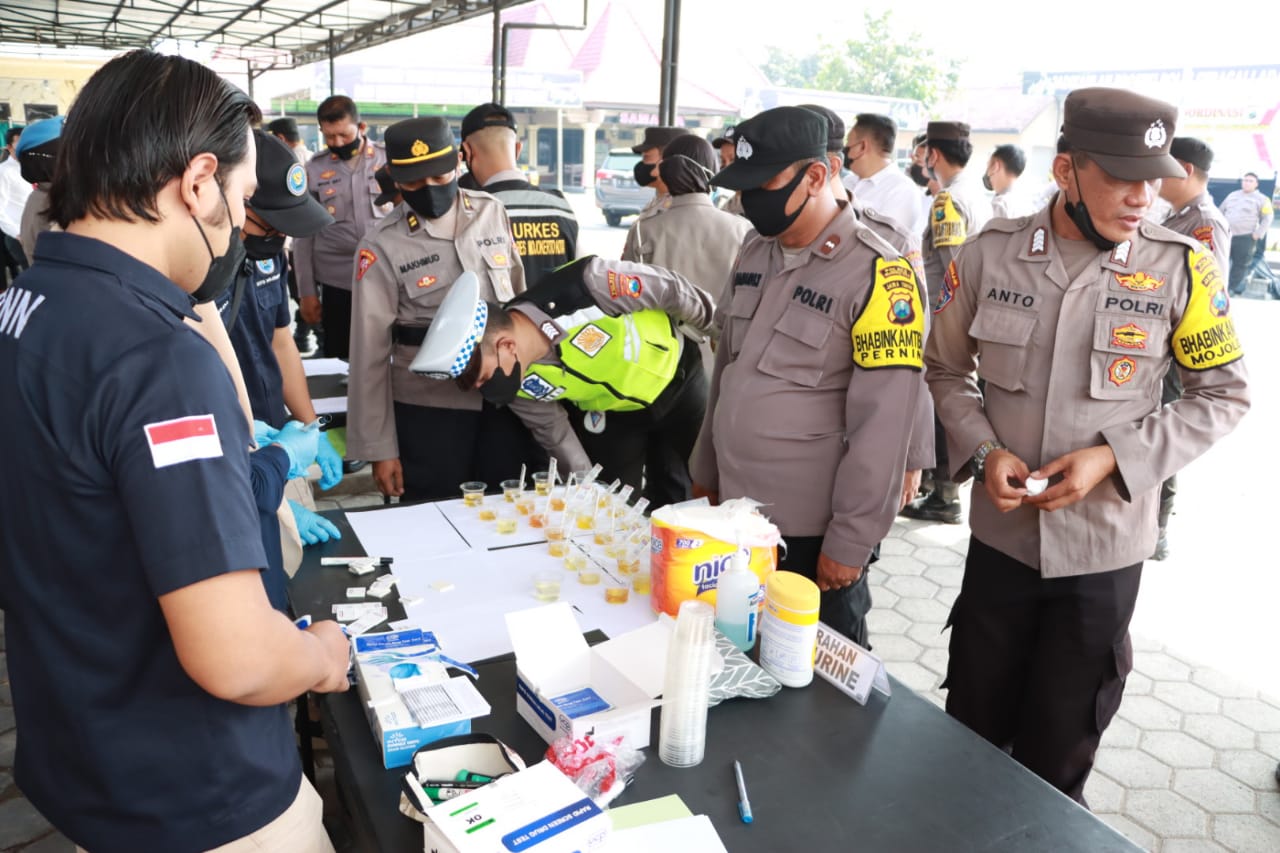 Kapolresta Mojokerto AKBP Wiwit Adisatria, S.H S.I.K M.T mengatakan, tes urine ini merupakan wujud nyata komitmen kuat Polresta Mojokerto dalam memerangi peredaran Narkoba.