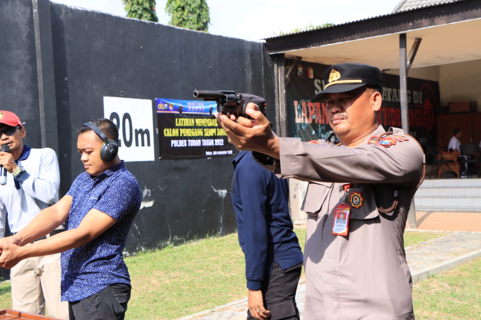 TUBAN, tNews co.id – Kepolisian Resor Tuban menggelar latihan menembak bagi anggota pemegang senjata api. Bertempat di Lapangan tembak Polres Tuban Kegiatan tersebut diikuti oleh Kapolres Tuban AKBP Rahman Wijaya, S.I.K., S.H., M.H., para pejabat utama Polres Tuban, serta anggota pemegang senjata api, Jumat (04/11).