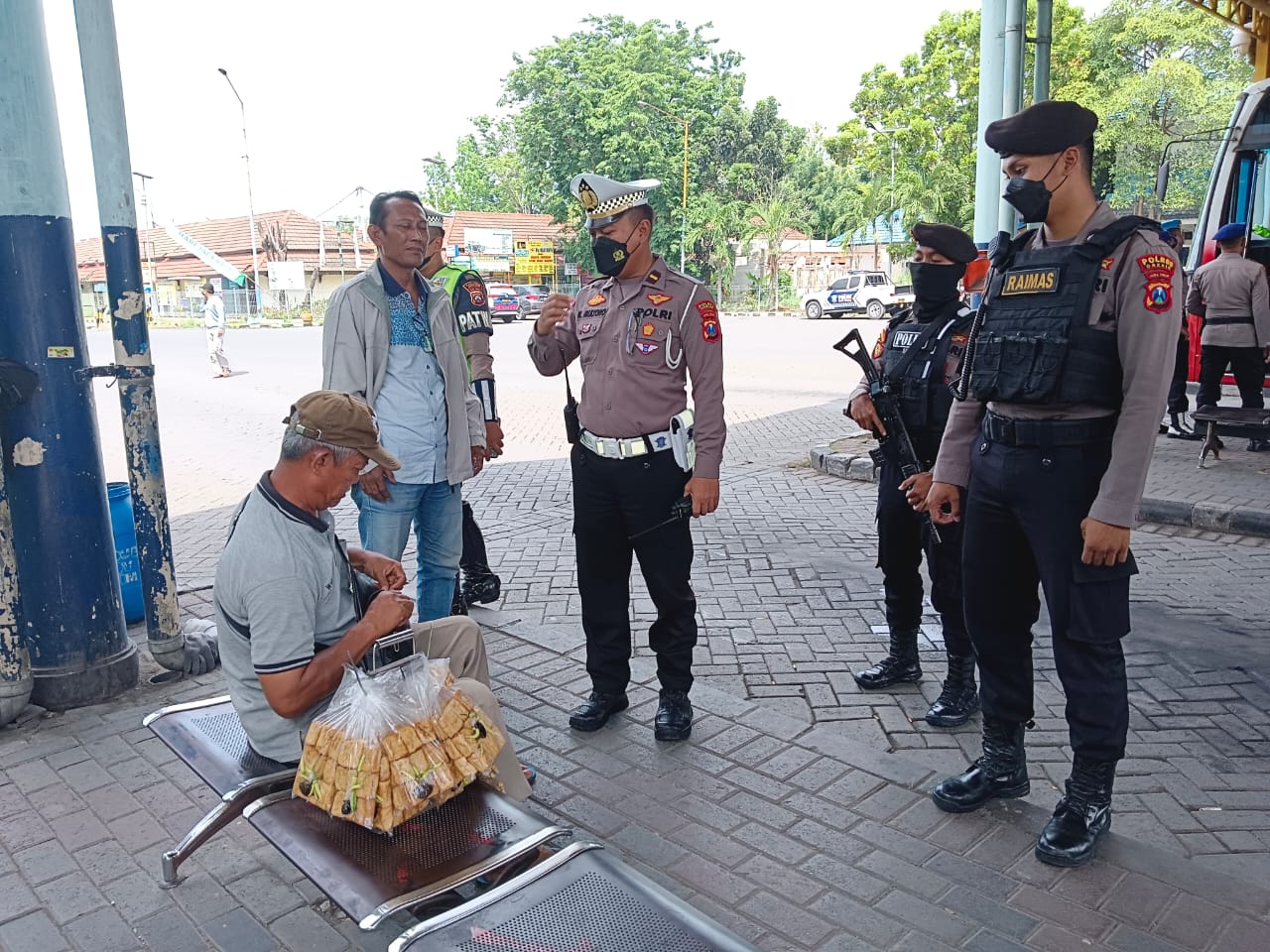 Anggota yang terlibat dalam gabungan TNI bersama Pol PP pelaksanakan patroli Harkamtibmas di Terminal Bunder berdialogis dengan masyarakat memberikan himbauan Kamtibmas, situasi aman terkendali.