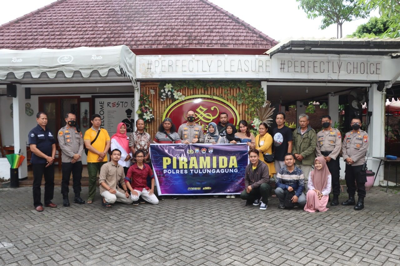 TULUNGAGUNG, tNews.co.id – Silaturahmi Kapolres Tulungagung bersama penggerak media sosial yang tergabung dalam kelompok kerja Polres Tulungagung dikemas dalam Ngopi Bareng Media ( Piramida).