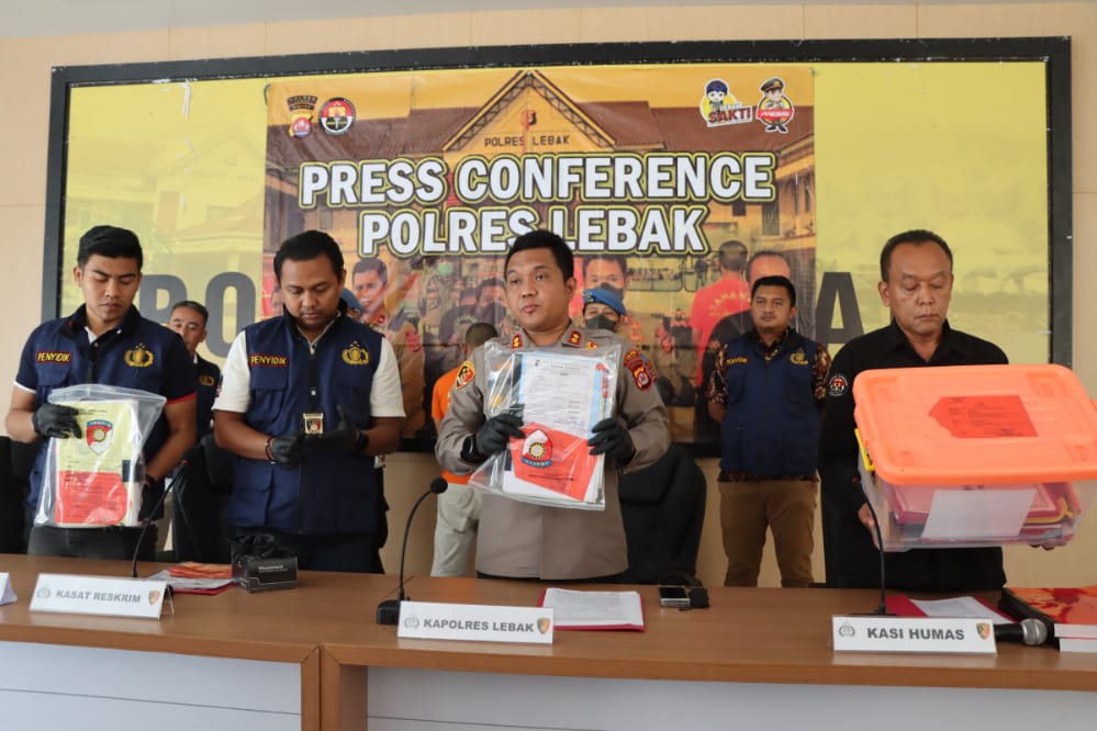 Press conference dipimpin oleh Kapolres Lebak Polda Banten AKBP Wiwin Setiawan didampingi Kasat Reskrim Polres Lebak Iptu Andi Kurniady Eka Setyabudi, Kasihumas Polres Lebak Iptu Jajang Junaedi dan Kanit Tipidkor Satreskrim Polres Lebak Ipda Putu Ari Sanjaya Putra.