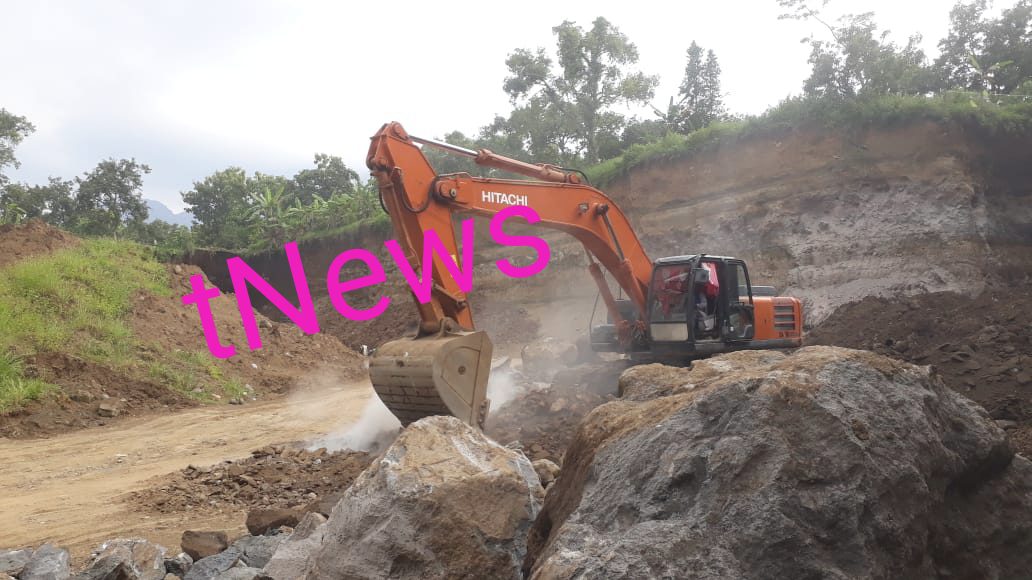 Saat berada di lokasi tambang, terlihat dua alat berat sedang memecah bebatuan. Tampak pula sekumpulan orang bercengkerama di pos bilik.