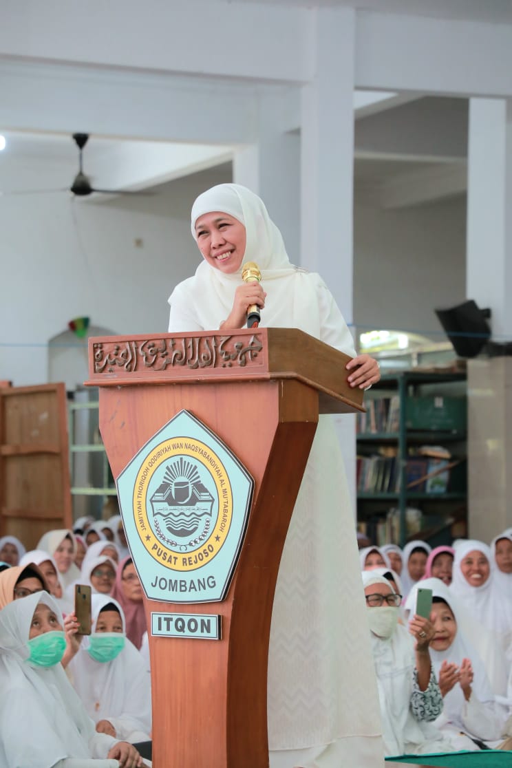 JOMBANG, tNews.co.id – Gubernur Jawa Timur Khofifah Indar Parawansa menghadiri peringatan Nisfu Sya’ban 1444 Hijriah yang diselenggarakan oleh Jami’iyah Thoriqoh Qodiriyah Wan Naqsabandiyah Al-Muta’baroh (ITQON) Pusat di Pondok Pesantren Darul Ulum, Peterongan – Jombang, Selasa (7/3).