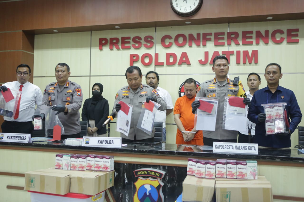 Dari tangan tersangka, Polisi menyita barang bukti 8 kardus susu nutrisi, 3 buah print out bukti keluar-masuk uang milyaran, flashdisk dan 3 unit ponsel.