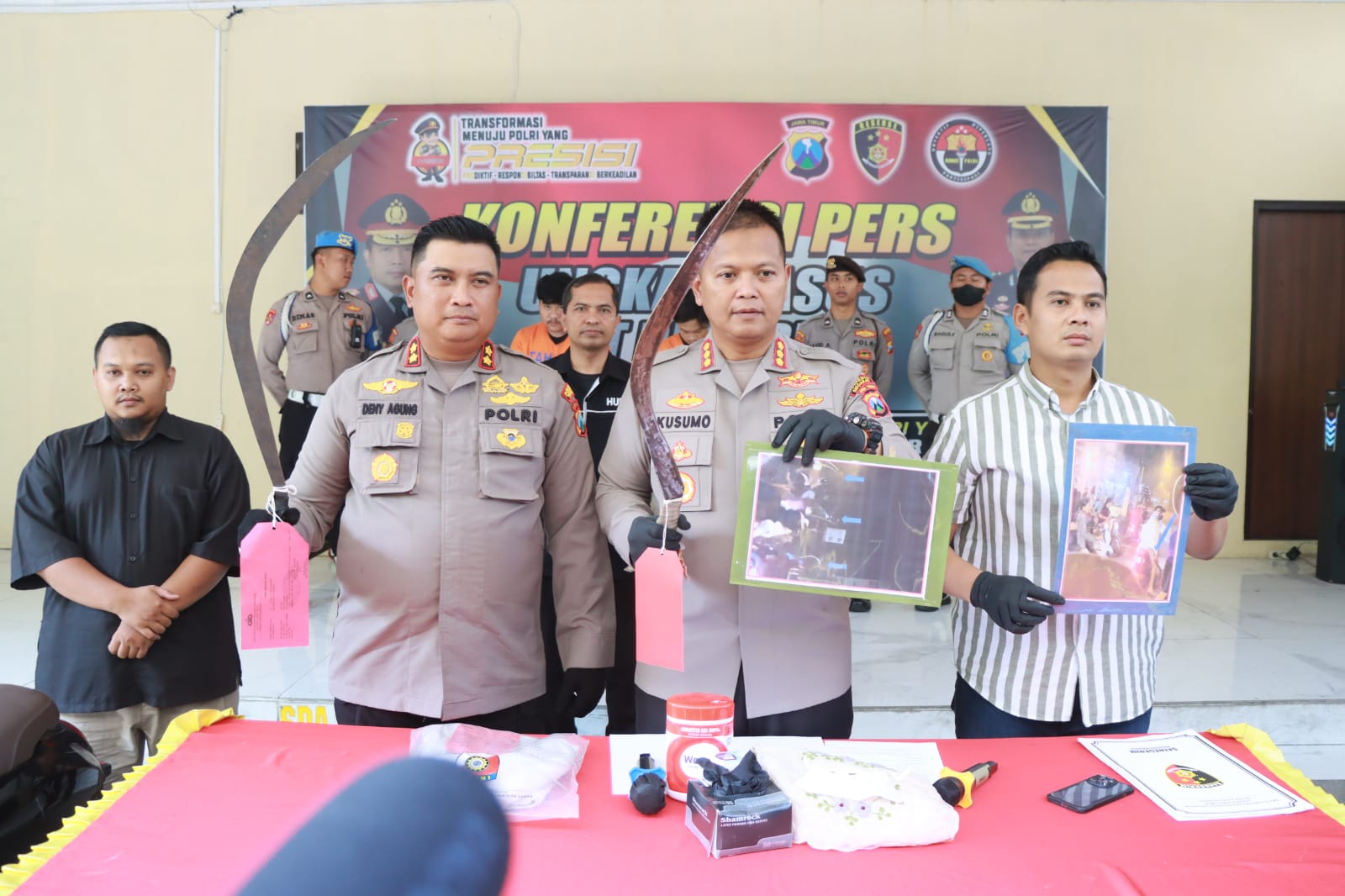 “Karena tindakan mereka yang mengacungkan senjata tajam meresahkan masyarakat. Maka polisi mengungkap kasus viral ini,” ujar Kombes Pol. Kusumo Wahyu Bintoro.