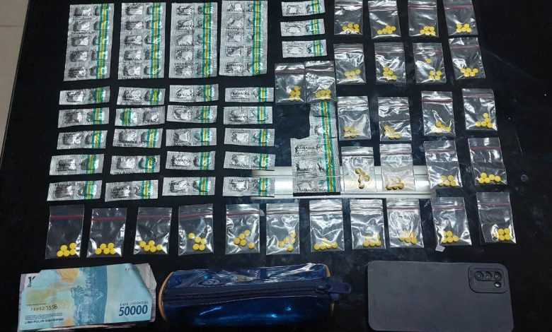 Dalam hal ini Malik mengatakan pihaknya berhasil mengamankan beberapa barang bukti. “Dari Pelaku, petugas berhasil mengamankan satu buah tas kecil warna biru, 94 butir obat jenis Tramadol HCI, 145 butir obat jenis Heximer, uang tunai hasil penjualan sebesar Rp100.000 dan satu unit handphone merk POCO warna hitam,” lanjut Malik.
