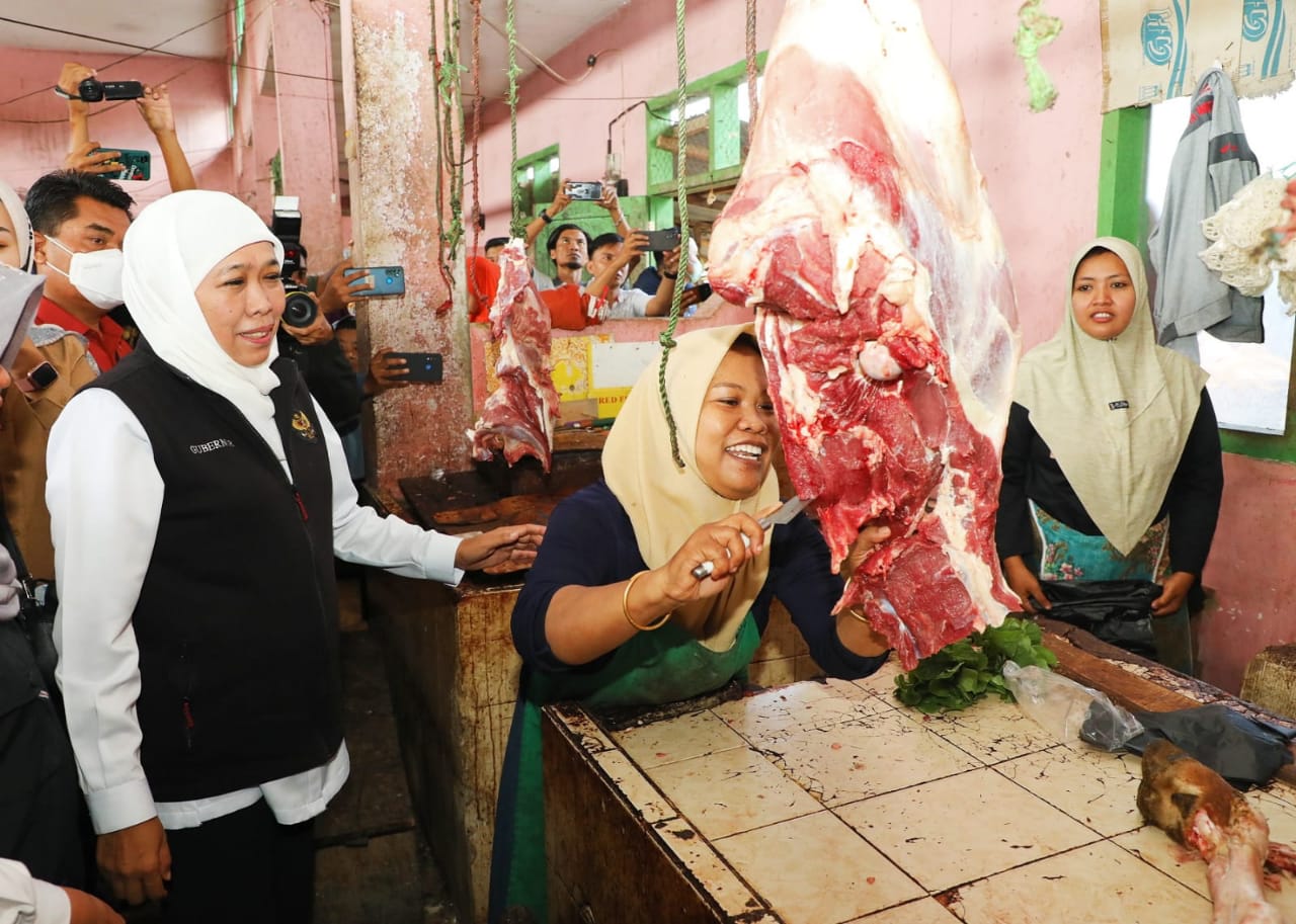 Selanjutnya, Khofifah juga bersyukur bahwa harga daging di Pasar ini jauh di bawah HET dengan kisaran Rp. 100.000-110.000 jauh dibawah HET yang mencapai Rp. 140.000,-.