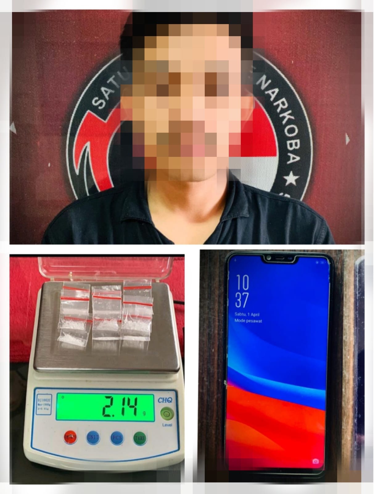 Dari penangkapan itu polisi mendapati barang bukti narkotika jenis sabu, dengan berat brutto 2,14 gram yang dikemas dalam bekas snack chiki bertuliskan Panser yang di dalamnya terdapat 9 bungkus plastik klip bening berisikan Narkotika jenis Shabu yang masing-masing di bungkus menggunakan potongan sedotan warna hitam. “Kami mengamankan barang bukti narkotika jenis sabu dengan berat brutto 2,14 gram yang dikemas tersangka dala plastic klip bening dan sembunyikan di dalam kemasan makanan ringan atau snack,” tutur Ilman.