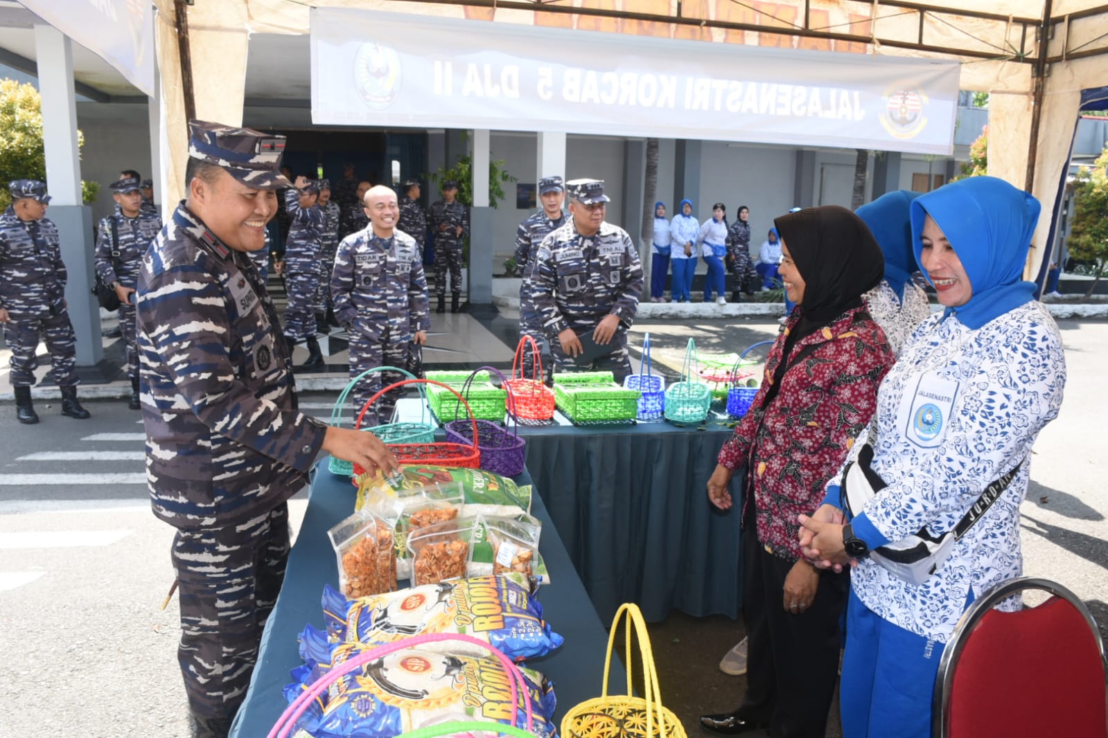 Turut hadir dalam kegiatan tersebut Wadan Lantamal V Kolonel Marinir Baedhowi Oktafidia beserta Wakil Ketua Korcab V DJA II Ny. Helen Baedhowi, Para Asisten Danlantamal V, Para Kasatker Lantamal V, Seluruh Prajurit dan PNS Jajaran Lantamal V serta Ibu-ibu pengurus Jalasenastri Korcab V DJA II, Manager Bank Mandiri Tanjung Perak Surabaya Hilaria Fitriasari.