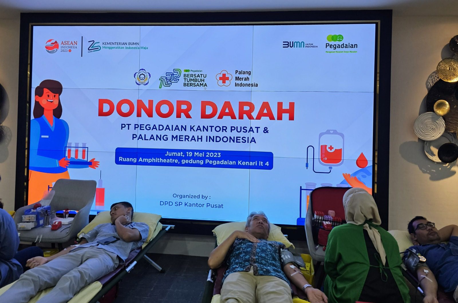 VP Corcomm PT Pegadaian Basuki Tri Andayani mengatakan bahwa kegiatan donor darah tersebut dilakukan sebagai salah satu rangkaian acara dalam rangka perayaan HUT ke-122 Pegadaian. Selain di Jakarta, kegiatan donor darah juga dilakukan di berbagai tempat di seluruh Indonesia.