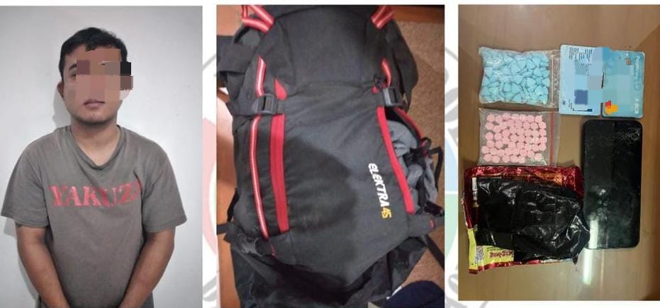 Dari tangan pelaku, polisi berhasil mengamankan 179 butir pil ekstasi, dengan rincian, 49 butir berlogo kaki kucing warna pink dibungkus dalam 1 klip plastik, dan 1 klip plastik lainnya berisi 130 butir dengan logo Tesla dan berwarna biru, 1 buah ATM BCA, Handphone, dan juga tas merek elektra 45.