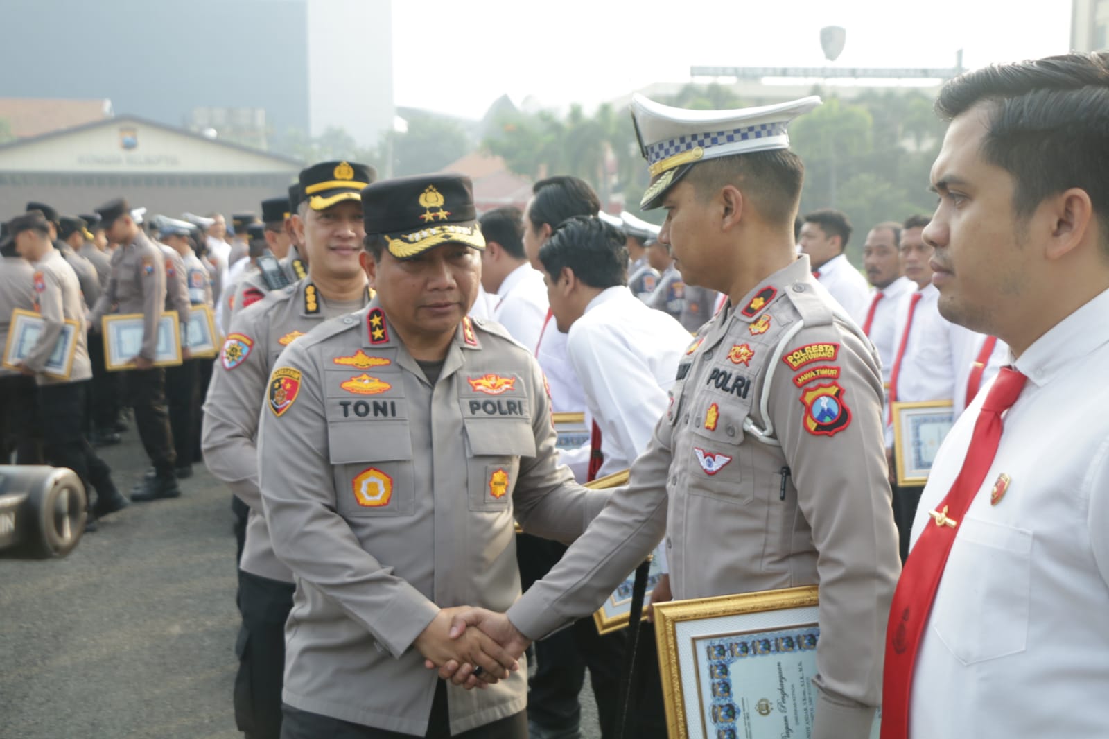 SURABAYA, tNews.co.id  – Sebanyak 59 personel Polda Jawa Timur dan Polres jajaran menerima penghargaan dari Kapolda Jatim Irjen Pol Dr Toni Harmanto,M.H di halaman Upacara Mapolda Jawa Timur,Senin (5/6).
