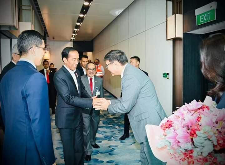 Setelah turun dari pesawat, Presiden Jokowi dan Ibu Iriana tampak disambut oleh Kepala Protokol Negara Singapura Chia Wei Wen, Deputi Dirjen ASEAN Singapura Karen Ong, Dubes Singapura untuk RI Kwok Fook Seng dan istri, Dubes RI untuk Singapura Suryo Pratomo dan istri, Atase Pertahanan RI Singapura Kolonel Pnb. Achmad Zailani dan istri, serta CEO Temasek Foundation Ng Boon Heong.