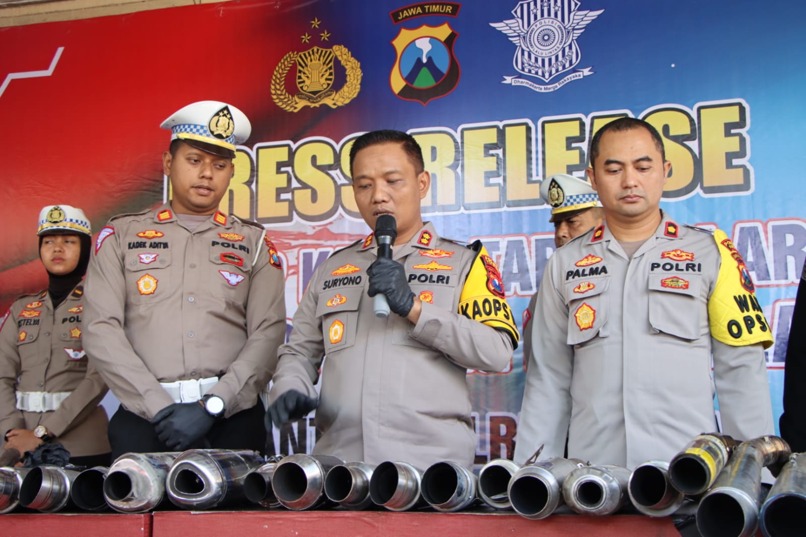 Hal itu disampaikan oleh Kapolres AKBP Suryono, S.H., S.I.K., M.H., saat menggelar jumpa pers motor serta knalpot hasil sitaan Satuan Lalulintas Polres Tuban, Senin(19/06/23)
