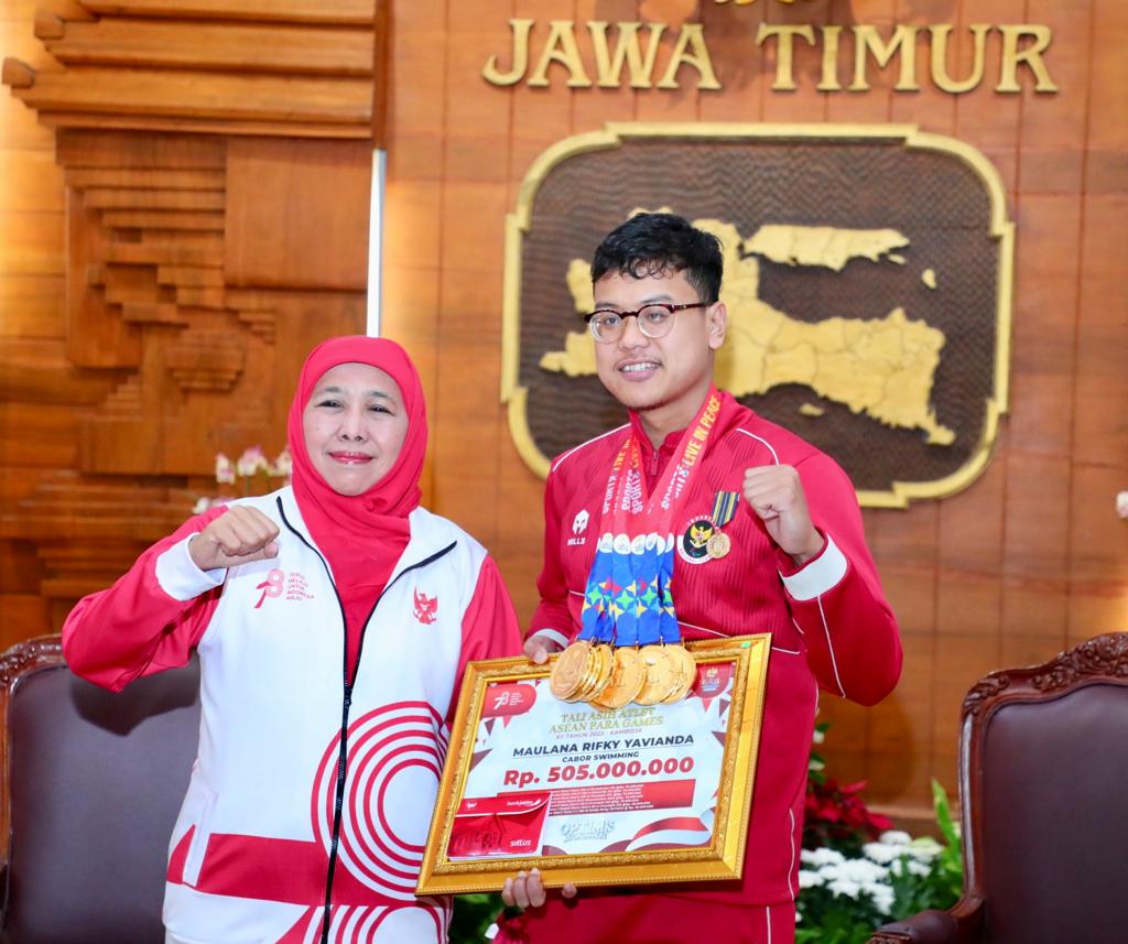 Dalam sambutannya, Gubernur Khofifah menyampaikan terima kasih kepada seluruh atlet yang telah berjuang mengharumkan nama Indonesia dan Jawa Timur dalam perhelatan olahraga ASEAN Para Games ke-12 di Kamboja pada Juni 2023 lalu. Selain itu, apresiasi juga disampaikannya pada para Pelatih atas dedikasinya melatih dan memberikan yang terbaik bagi para Atlet selama berlaga.