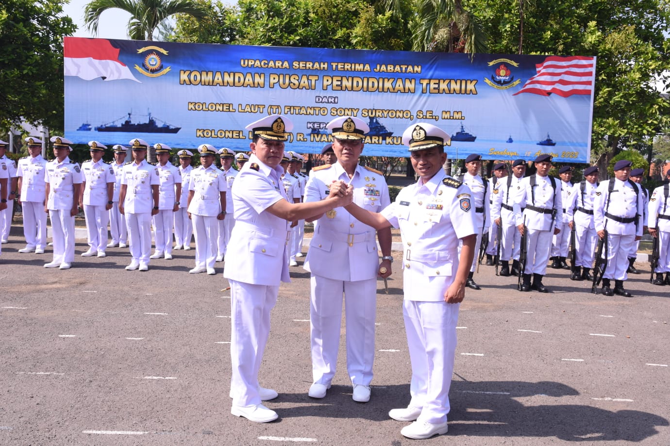 Dipimpin oleh Komandan Kodikdukum Laksma TNI Dr. Taufik Arief, upacara Sertijab Danpusdiktek dilaksanakan di Lapangan Apel Gedung E.H. Thomas Pusdiktek Mako Kodiklatal Bumimoro Surabaya, pada Jumat (18/8/2023). Jabatan Komandan Pusdiktek resmi dijabat oleh Kolonel Laut (T) R. Ivan Syafari Kurniawan menggantikan pejabat sebelumnya Kolonel Laut (T) Fitanto Sony Suryono.