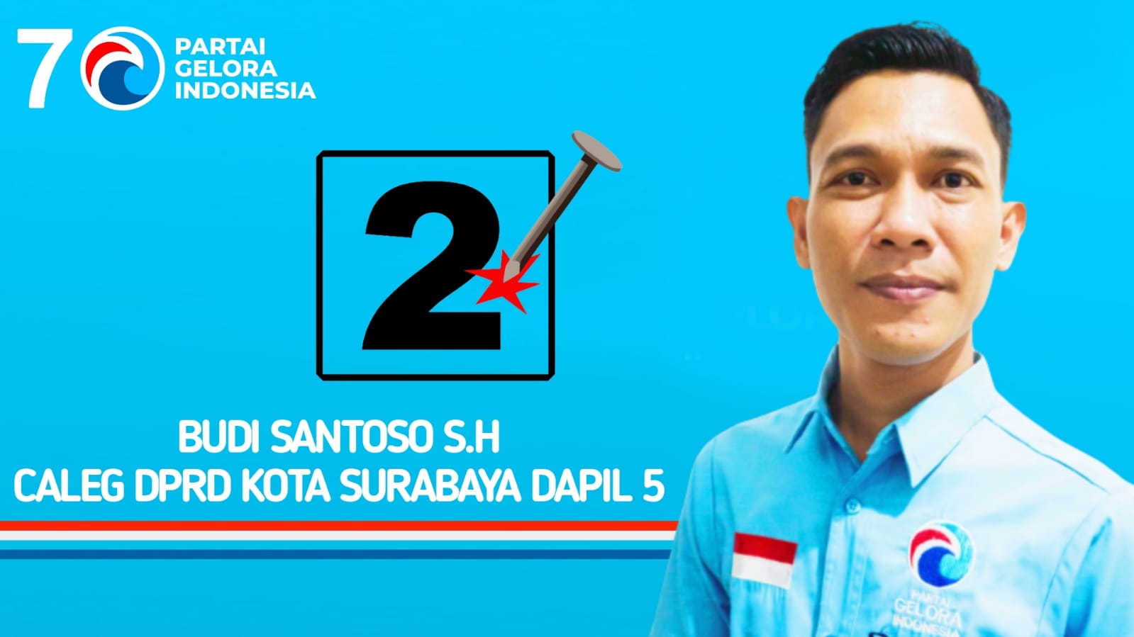 Salah satu Bakal Calon Legislatif (Bacaleg) DPRD Kota Surabaya dari Dapil 5 Budi Santoso S.H dengan No Urut 2 dari Partai GELORA INDONESIA tidak keberatan dan sangat terbuka kalau jati diri dan rekam jejaknya diketahui publik.