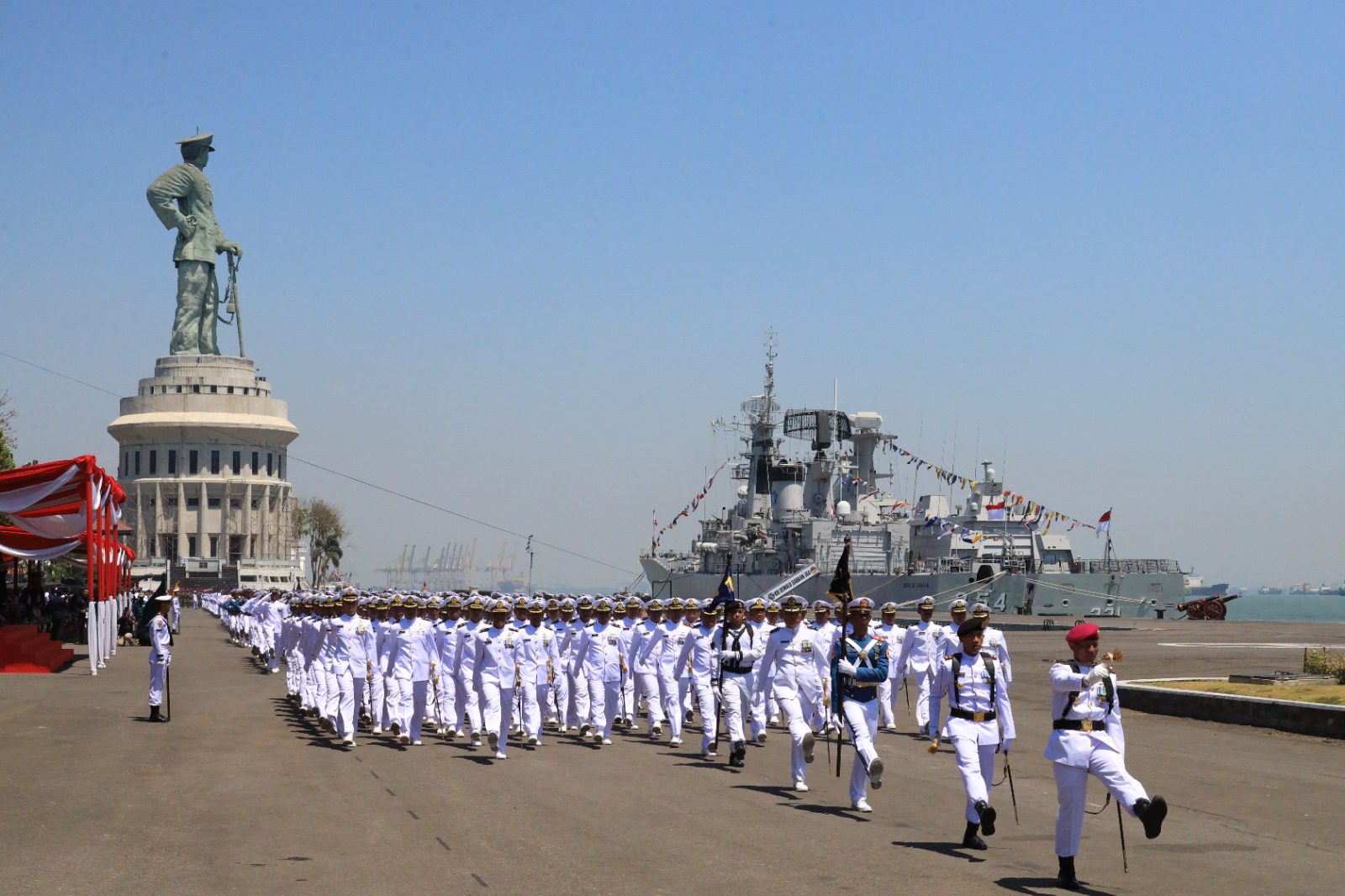 SURABAYA, JATIM, tNews.co.id – Komandan Komando Pembinaan Doktrin Pendidikan dan Latihan TNI Angkatan Laut (Dankodiklatal) Letjen TNI Marinir Suhartono turut menghadiri Upacara Peringatan Hari Ulang Tahun (HUT) Ke-78 TNI AL, yang berlangsung penuh khidmat di Dermaga Ujung Madura Koarmada II Surabaya, Senin (11/9/2023).