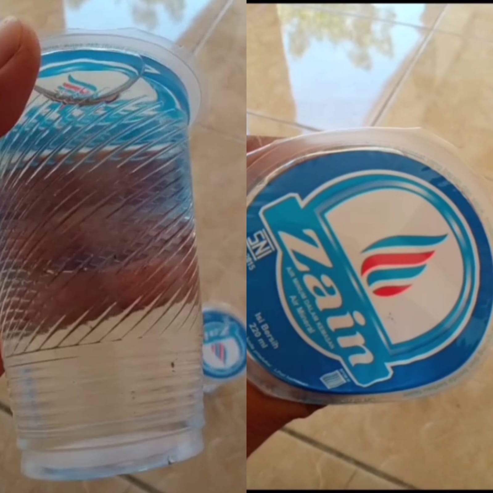 “Air Zain banyak mengandung kotoran di dalamnya, banyak lumutnya. Ini masih segel, ternyata setelah diamati banyak lumutnya”. Ucap Konsumen dalam video tersebut.