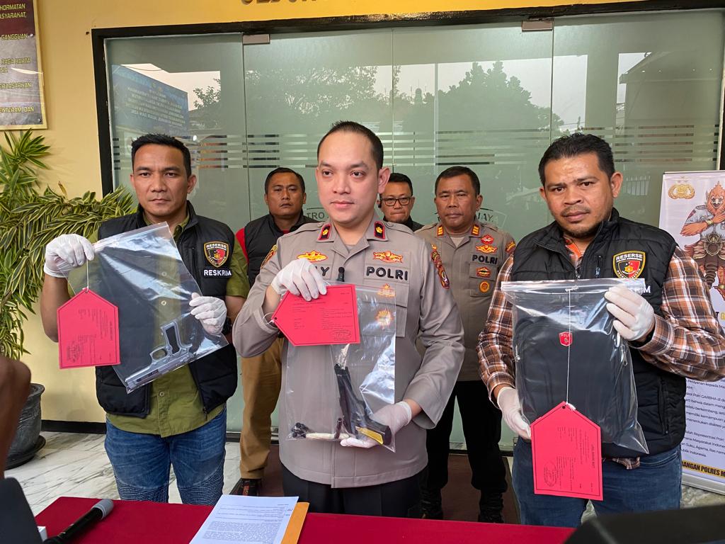 ” Kami juga turut mengamankan beberapa barang bukti diantaranya 2 pucuk senjata mainan yang dipergunakan oleh pelaku untuk menakuti korbannya serta 1 buah kunci letter T, 3 buah anak kunci serta 4 unit sepeda motor, ” Ujar Kompol Billy Gustiano Barman saat press confrence di Mapolsek, Rabu, 27/9/2023.