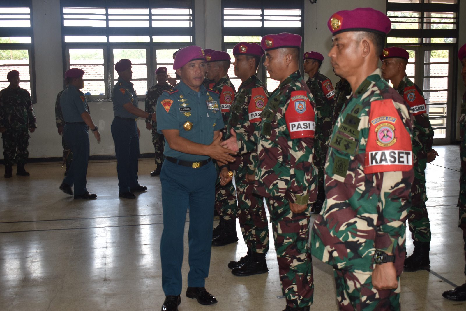 SURABAYA, JATIM II tNews.co.id – Sebanyak 17 orang Perwira Siswa (Pasis) Pendidikan Spesialis Perwira (Dikspespa) Marinir Angkatan III melaksanakan Latihan dan Praktek (Lattek) Prosedur Perencanaan dan Berganda Operasi Amfibi yang dibuka oleh Komandan Kodikmar Brigjen TNI Marinir Samson Sitohang, bertempat di Ruang Oyu Sepaif Pusdikif Kodikmar Gunungsari Surabaya. Rabu, (04/10/2023).