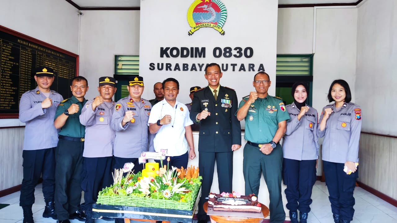 Apresiasi dan ucapan terima kasih secara tulus disampaikan oleh Komandan Kodim 0830/Surabaya Utara Letkol Inf Dharmawan Setyo Nugroho, S.I.P. kepada Instansi Kepolisian khususnya Polrestabes Surabaya atas partisipasinya pada Hari Ulang Tahun ke 78 Tentara Nasional Indonesia tahun 2023. “Kami mewakili TNI khususnya yang ada di Kodim 0830/Surabaya Utara dengan hati yang tulus menyampaikan terima kasih atas surprise pemberian ucapan ini ,” katanya.
