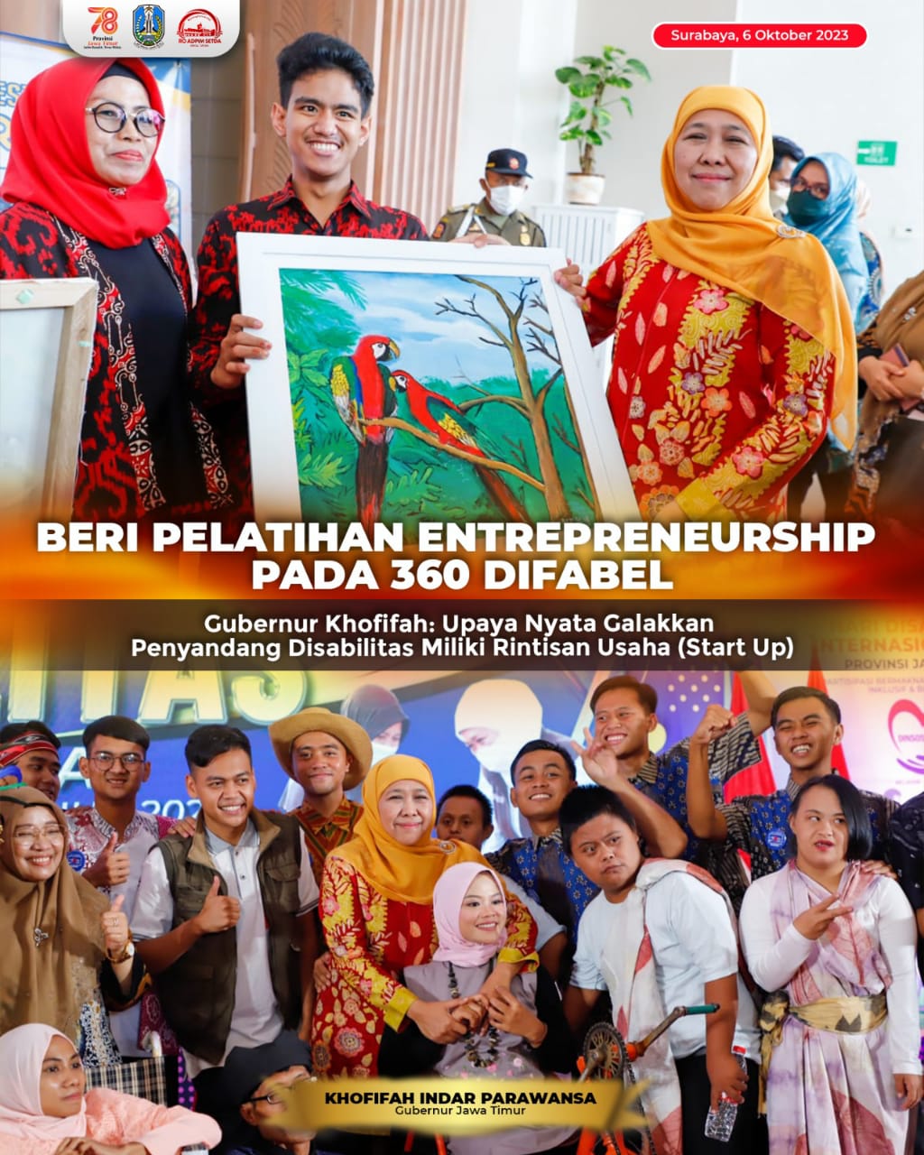 Pemprov Jatim Beri Latihan Entrepreneurship 360 Difabel, Gubernur Khofifah : Agar Mereka Berdaya Secara Ekonomi dan Mandiri