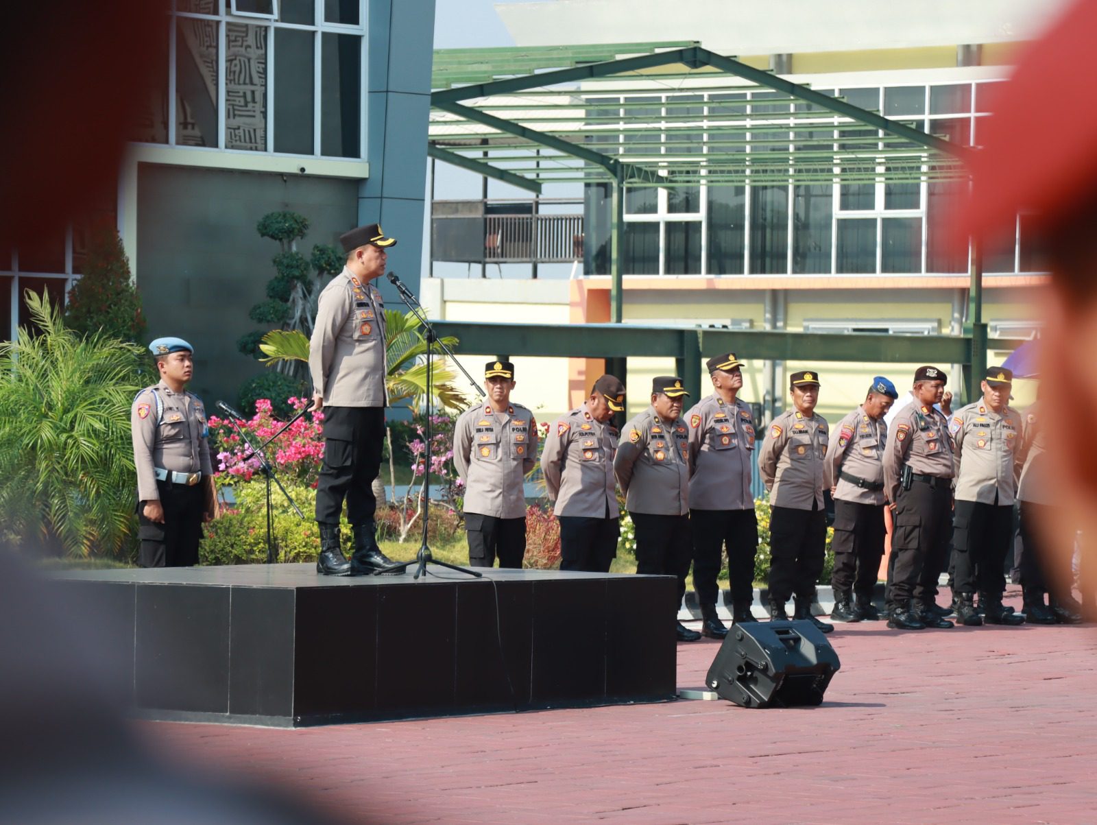 Apel yang diikuti oleh wakapolres Gresik Kompol Erika Purwana Putra, PJU, Anggota Polri dan ASN Polres Gresik.