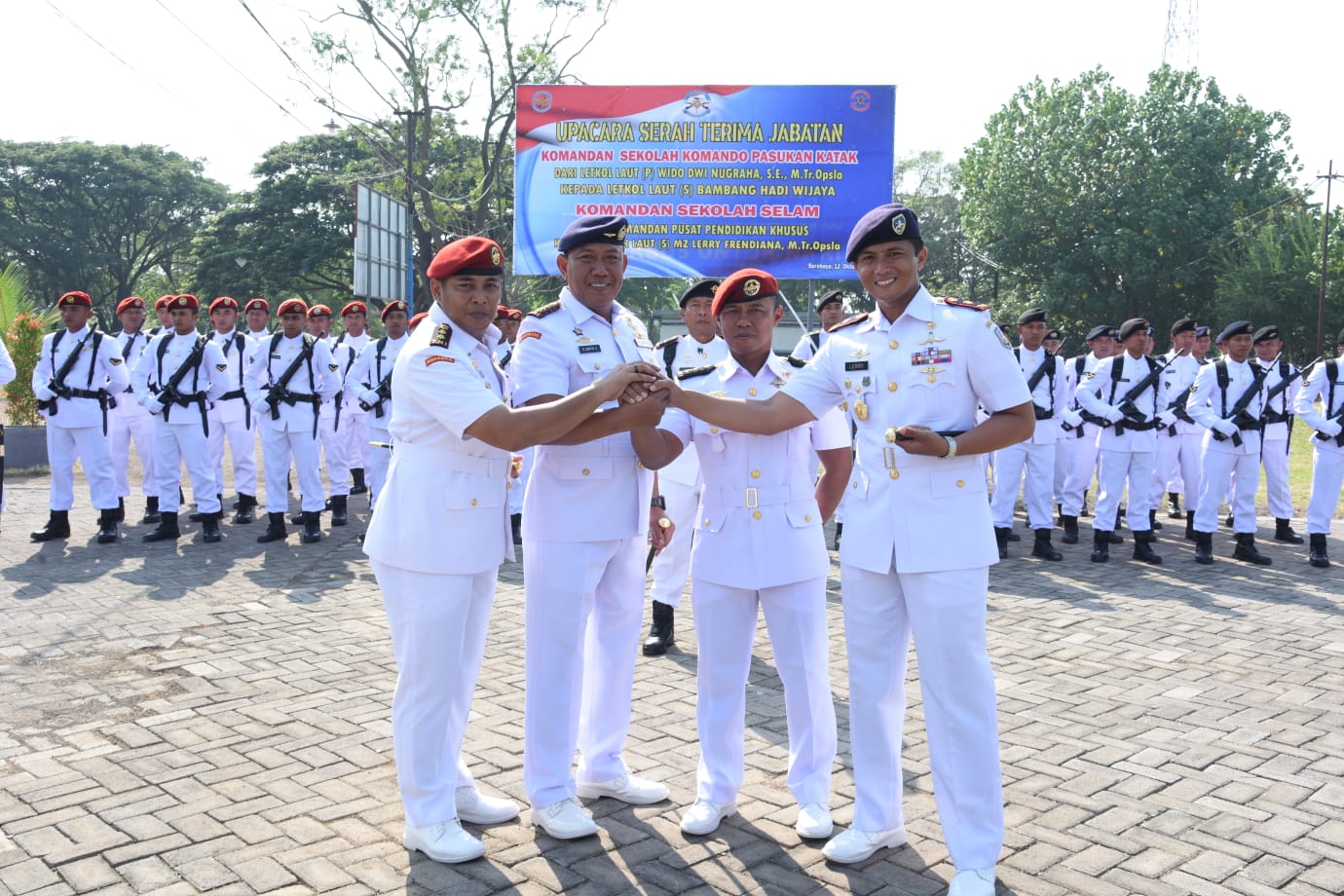 Dalam sertijab tersebut, jabatan Komandan Sekopaska diserahterimakan dari Letkol Laut (P) Wido Dwi Nugraha yang merupakan Alumni AAL Angkatan 49 Tahun 2000 kepada Letkol Laut (S) Bambang Hadi Wijaya Alumni AAL Angkatak 50 Tahun 2001. Sedangkan jabatan Komandan Seselam diserahkan dari Komandan Pusdiksus kepada Mayor Laut (S) MZ. Lerry Frendiana Alumni AAL Angkatan 52 Tahun 2003.