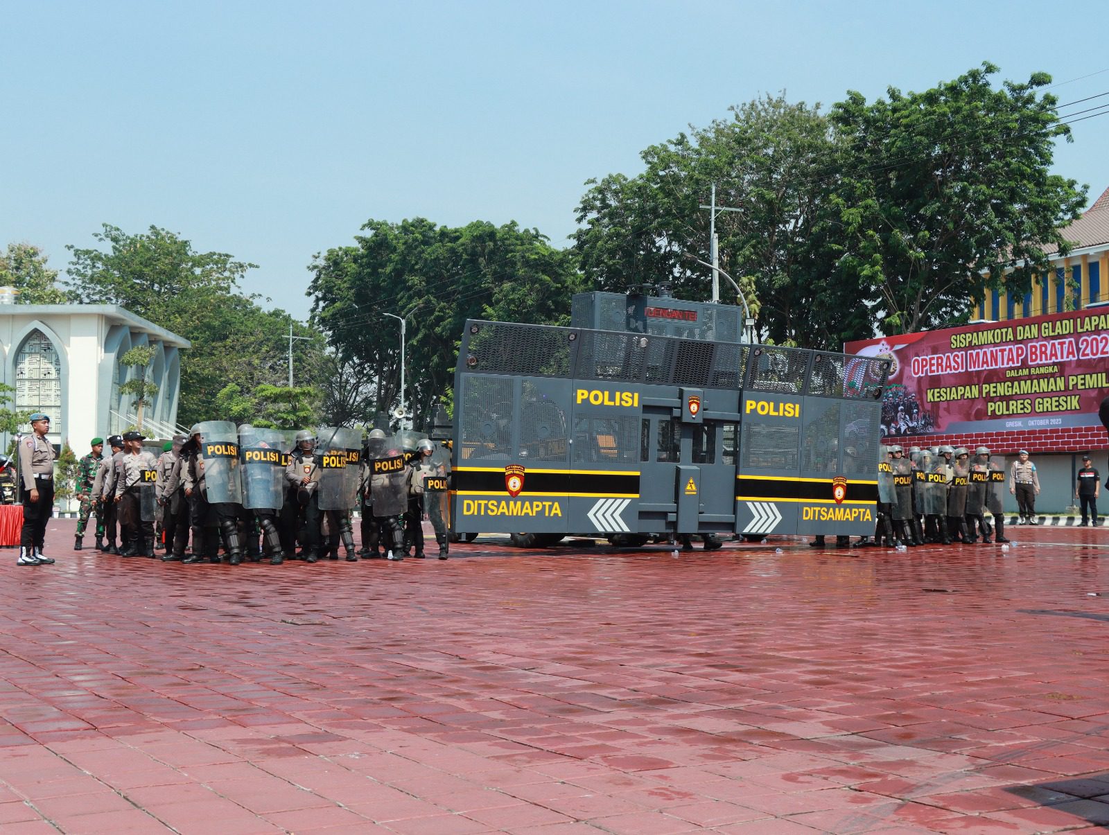 GRESIK, JATIM II tNews.co.id  – Polres Gresik menggelar Apel Operasi Mantap Brata Semeru 2023/2024 dalam rangka pengamanan pemilu ini dilaksanakan selama 222 hari sejak 19 oktober 2023 sampai dengan 20 oktober 2024. Diikuti oleh 660 personel Polres Gresik guna mengamankan seluruh tahapan pemilu 2023-2024, Wakapolres Gresik Kompol Erika Purwana Putra pimpin apel dan di ikuti Forkopimda, PJU, Kapolsek Jajaran dan tamu undangan