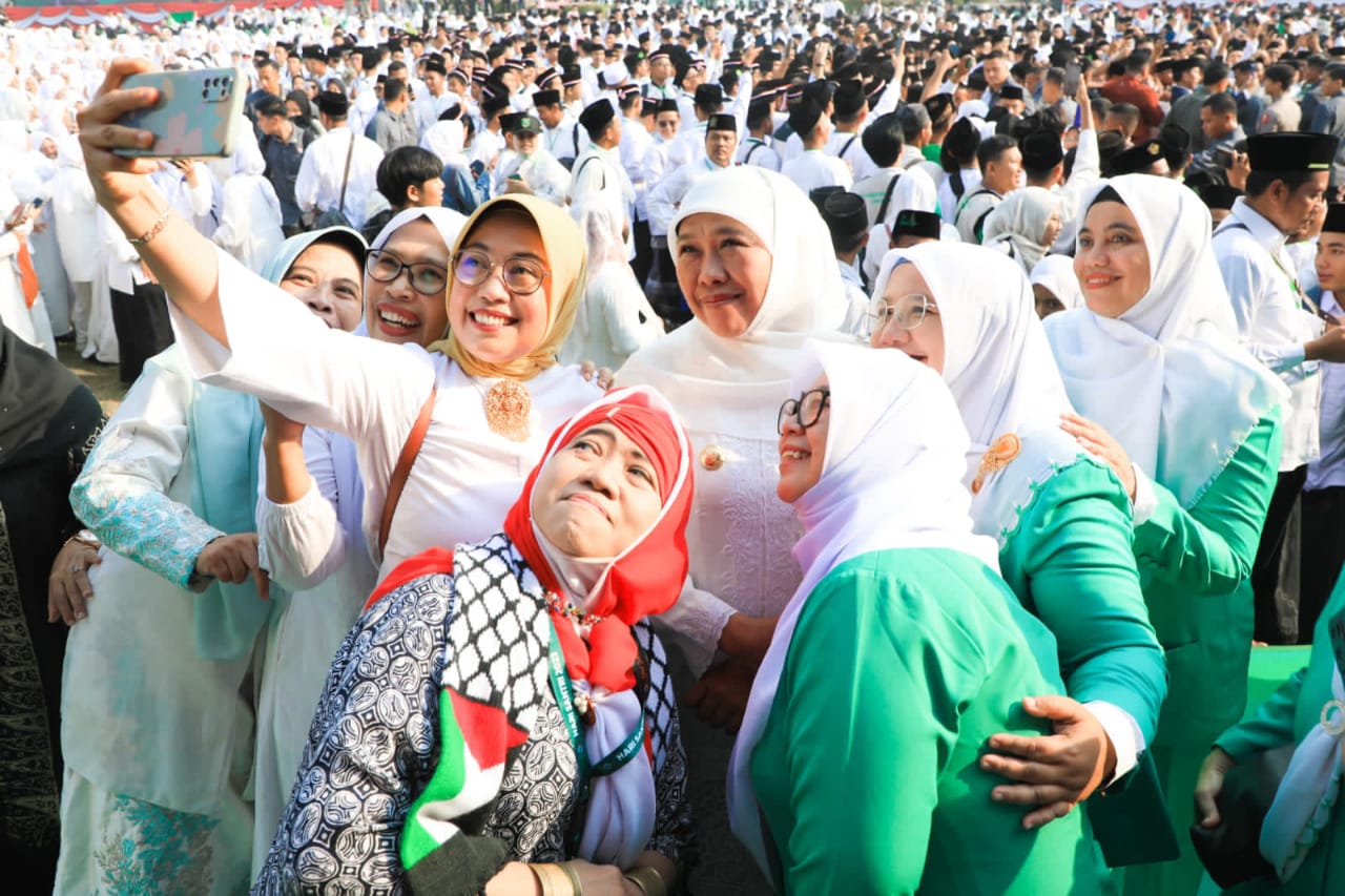 SURABAYA, JATIM II tNews.co.id – Gubernur Jawa Timur Khofifah Indar Parawansa mendorong seluruh santri untuk berperan aktif membangun suasana kondusif mencegah terjadinya perpecahan akibat suksesi 2024. Menurutnya, tensi politik di masyarakat berpotensi semakin tinggi sehingga berpotensi pula memicu konlfik dan polarisasi. Apalagi, kata dia, pelaksanaan pemilu Presiden dan Wapres serta legislatif dilaksanakan secara serentak.