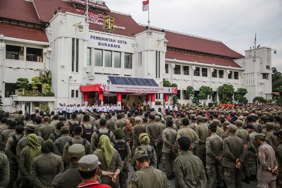 Apel dipimpin langsung Wali Kota Surabaya Eri Cahyadi dan dihadiri Kepala Perangkat Daerah (PD) di lingkup pemkot serta camat. Apel juga diikuti jajaran Satpol PP, Badan Penanggulangan Bencana Daerah (BPBD), Dinas Perhubungan (Dishub), Dinas Pemadam Kebakaran dan Penyelamatan (DPKP) hingga Organisasi Kemasyarakatan (Ormas).