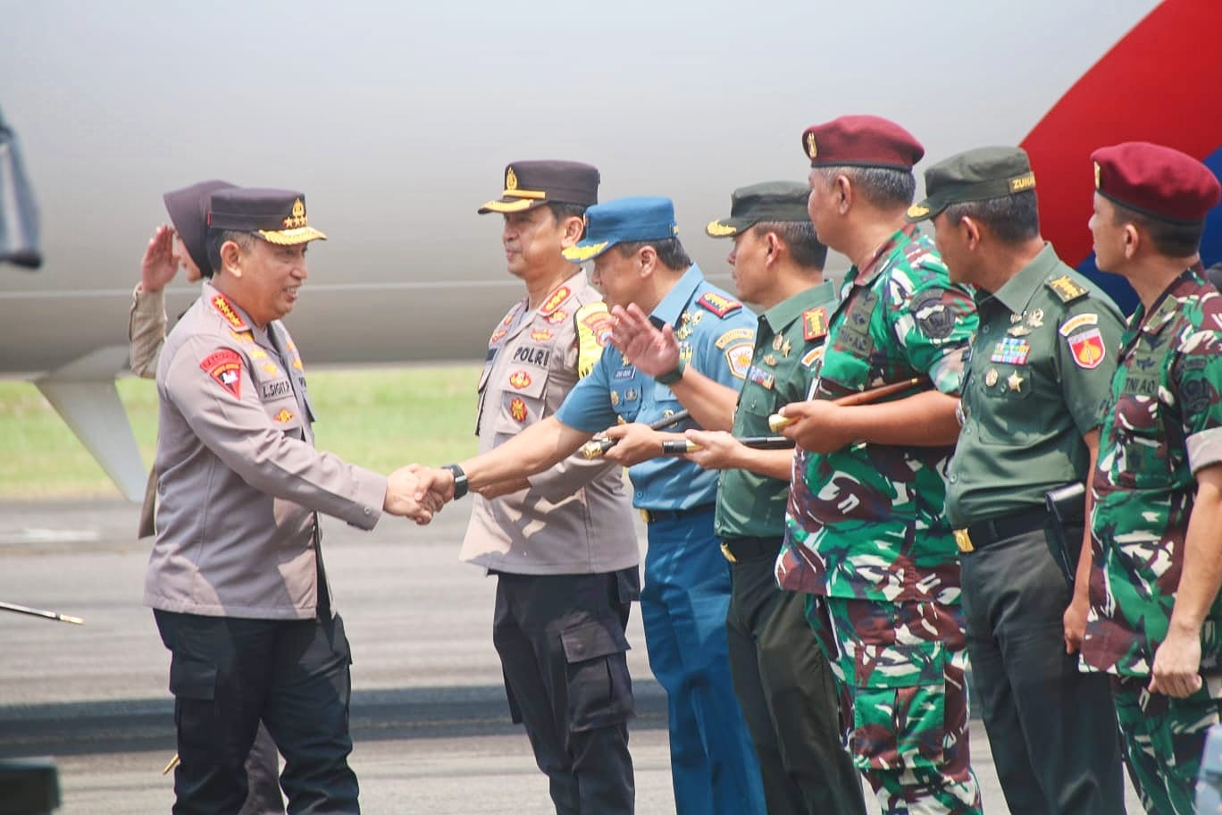 Turut hadir dalam penyambutan Panglima TNI dan Kapolri antara lain Pangdam IV/Dip Mayjen TNI Widi Prasetijono, Kapolda Jateng Irjen Pol Drs.Ahmad Lutfi S.ST., M.K., S.H., Kabankesbangpol Prov Jateng Haerudin, S.H., M.H., Danlanumad A. Yani Puspenerbad Kolonel Cpn Ihwan Okti Riyadi, S.I.P., MI.P., Danlanal Semarang Kolonel Laut (E) Joko Andriyanto, S.T., M.Tr.Hanla., MAP., Kapolrestabes Kombes Pol Irwan Anwar, S.I.K., S.H., M.Hum., Dandim 0733/KS Letkol Inf Rahmad Saerodin, S.H., M.SPi., para PJU Kodam IV/Diponegoro, Kabengpuspenerbad, Para PJU Polda Jateng, LO TNI AL Kodam IV/Diponegoro, LO TNI AU Kodam IV/Diponegoro, Para Perwira Staf Lanumad A. Yani Semarang dan Para Perwira Staf Mako Lanal Semarang.