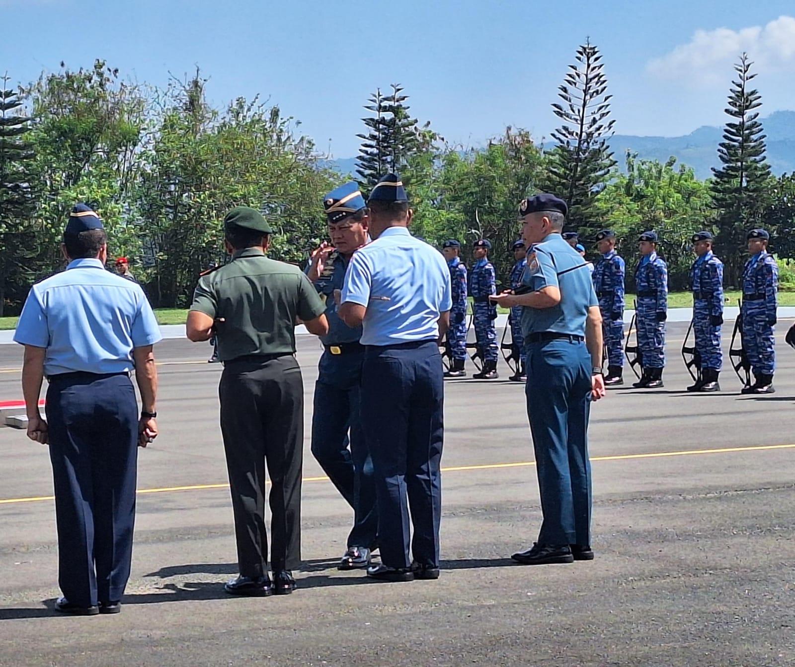 Ikut hadir dalam penyambutan, Marsekal TNI Fadjar Prasetyo, S.E., M.P.P., C.S.F.A (Kasau), Laksda TNI Yayan Sofiyan, S.T., M.Si., CHRMP., M.Tr.Opsla., (Pangkoarmada II), Marsda TNI Dr. Budhi Achmadi, M.Sc (Pangkoopsud II), Mayjen TNI Haryanto, S.I.P., M.Tr. (Han)., (Pangdivif 2 Kostrad), Marsma TNI Fairlyanto, S.T., M.A.P (Danlanud Abd. Saleh), Brigjen TNI (Mar) Joni Sulistiawan, S.H., M.Han (Danlantamal V), Brigjen TNI Totok Suhartono, S.Sos (Kapoksahli Kodam V Brawijaya), Kolonel Inf Jamaludin, S.H. (Danrem 083/BDJ), Letkol Inf Arif Nurbianto, S.I.P M.M. (Dandim 0818 Kabupaten Malang – Batu).