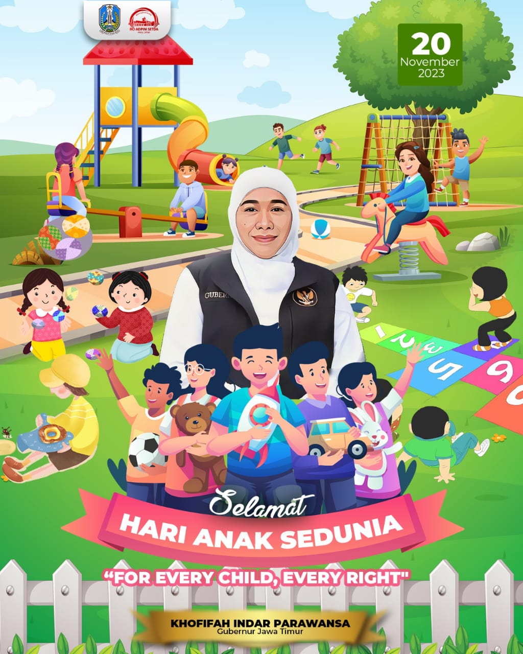 Untuk itu, Khofifah menegaskan, Pemprov Jawa Timur berkomitmen memenuhi hak-hak anak yang tertera dalam Declaration of the Rights of the Child. Yang salah satu poinnya adalah hak anak untuk mendapat sarana-prasarana, baik material maupun spiritual, untuk perkembangannya.