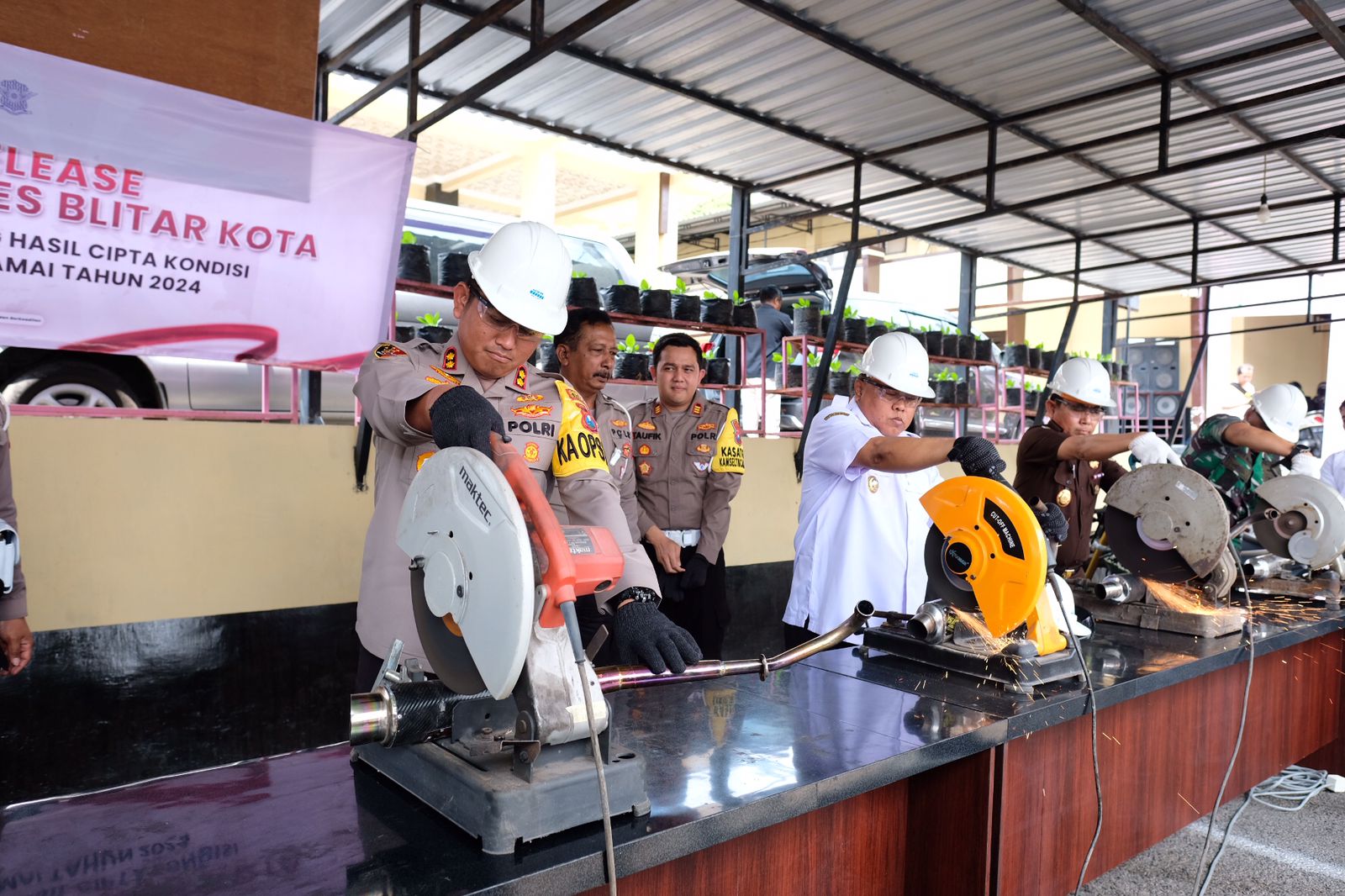 “Knalpot brong yang kami musnahkan adalah hasil razia cipta kondisi menjelang Pemilu 2024,” kata Kapolres Blitar Kota, AKBP Danang Setiyo P.S S.H S.I.K, Jumat (24/11).