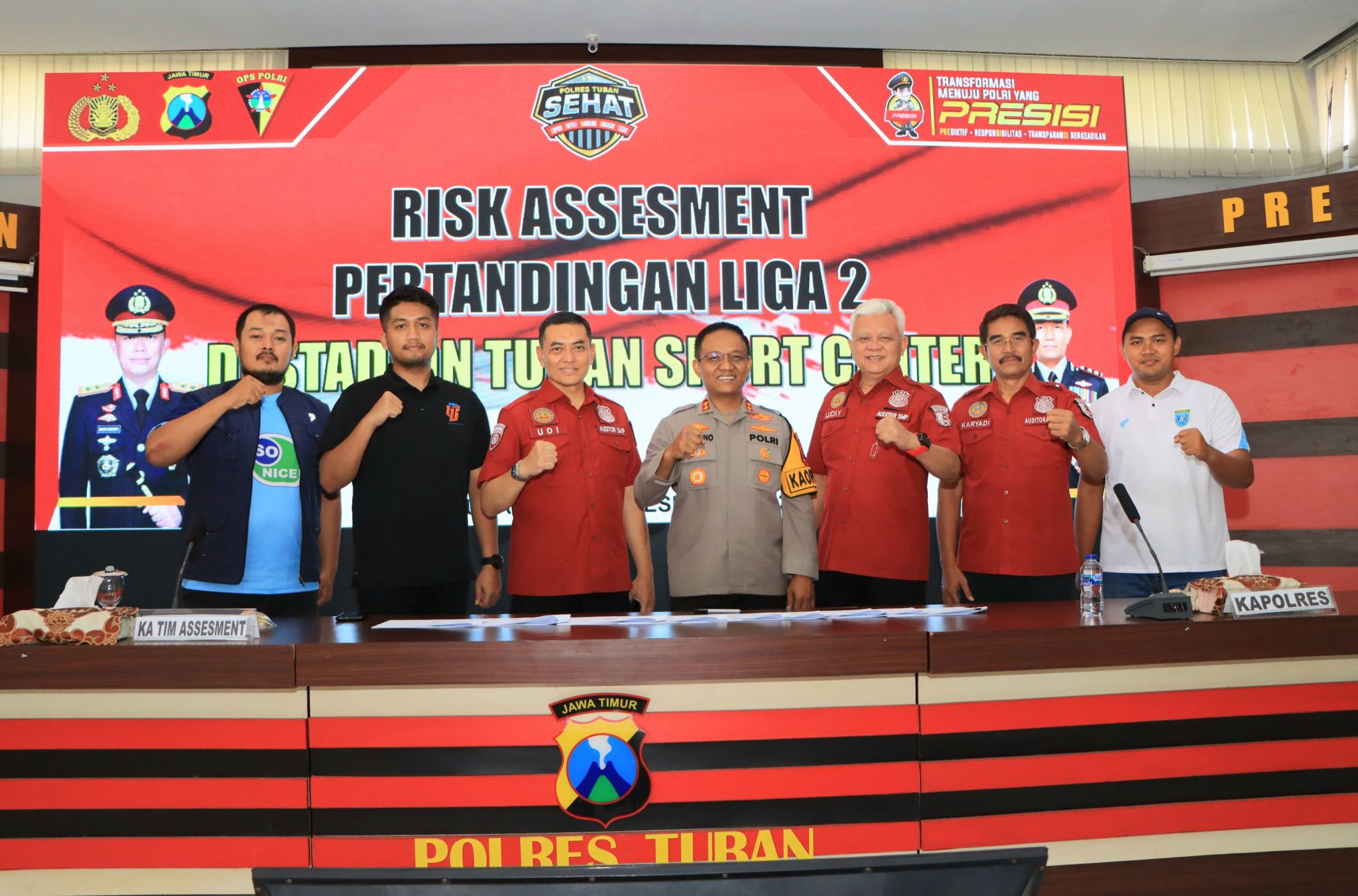 Tuban, JATIM II tNews.co.id  – Hari kedua pelaksanaan riks assessment (penilaian risiko) oleh tim dari Mabes Polri terhadap stadion Tuban Sport Centre (TSC) dilaksanakan di Mapolres Tuban dengan agenda penyampaian hasil temuan maupun rekomendasi, kamis (07/12/2023)