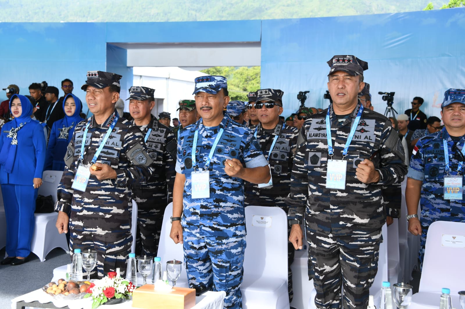 Tidore, MALUKU UTARA, tNews.co.id – Guna mewujudkan rakyat mencintai dunia kemaritiman, Komandan Kodiklatal (Dankodiklatal) Letjen TNI Marinir Nur Alamsyah, menghadiri Puncak Peringatan Hari Nusantara Tahun 2023 di Tidore. Hari Nusantara yang mengusung tema, “Merajut Konektivitas Nusantara dan Ekonomi Maritim dari Titik Nol Jalur Rempah,” tersebut dibuka langsung oleh Menteri Perhubungan Republik Indonesia (Menhub RI), Budi Karya Sumadi didampingi Kepala Staf Angkatan Laut (Kasal) Laksamana TNI Dr. Muhammad Ali, bertempat di kawasan pantai Tugulufa Kota Tidore, Kepulauan Maluku Utara. Rabu (13/12/2023).