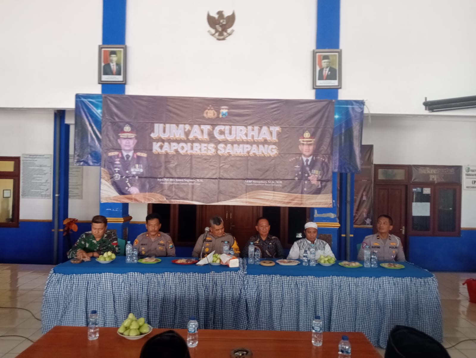 Sampang, JATIM II tNews.co.id – Kegiatan Rutinitas Jum’at Curhat Polres Sampang yang di laksanakan di Aula Pendopo Kantor Kecamatan Camplong, Kabupaten Sampang, pada tanggal 15 Desember 2023.